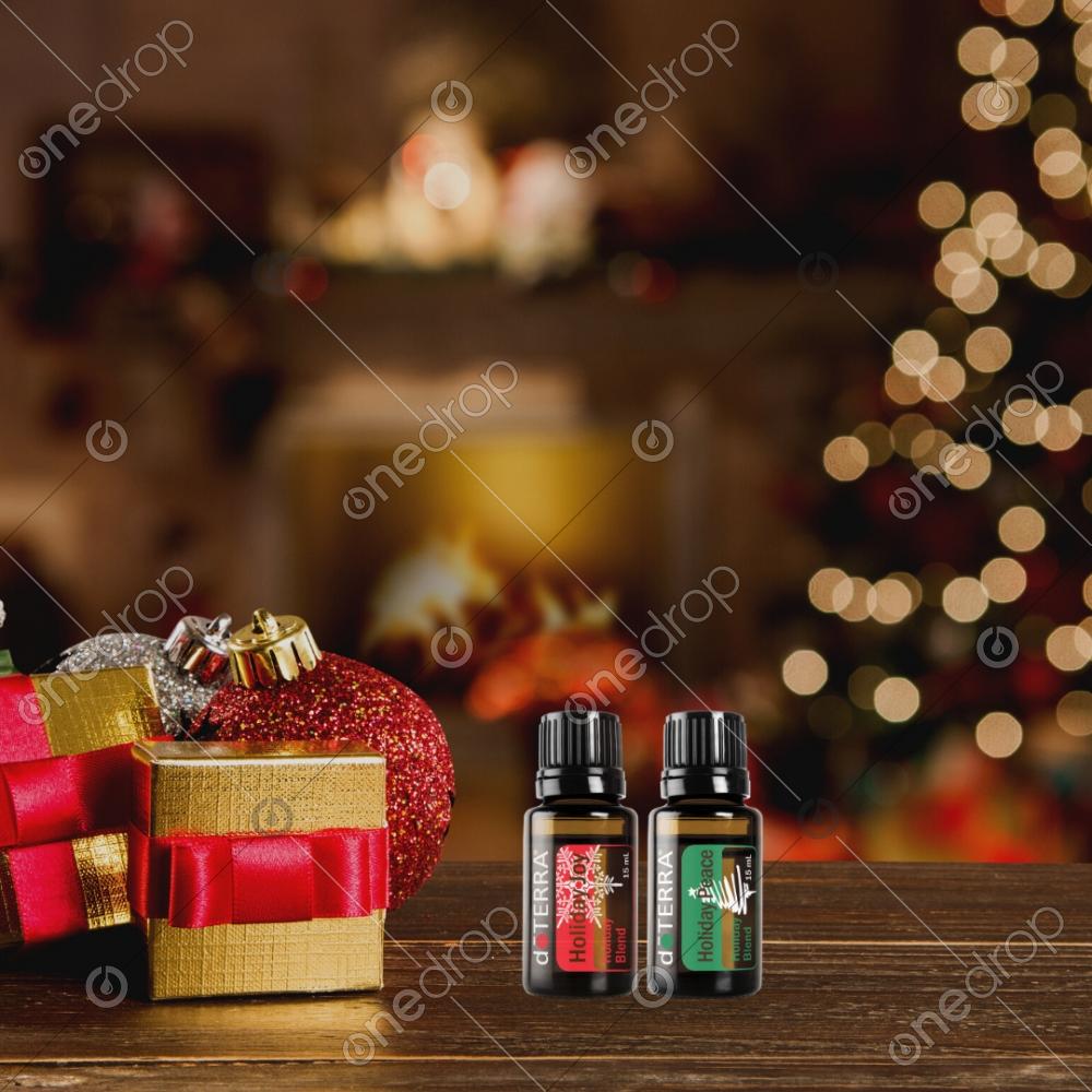 Christmas by the fireplace featuring Holiday Joy and Holiday Peace - Social Media Graphic