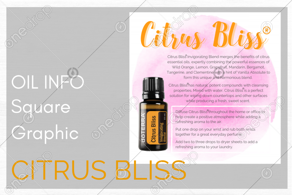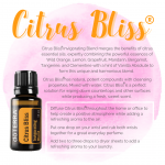 Square oil info graphic with everything you need to know about Citrus Bliss blend