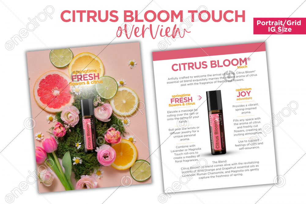 Artfully crafted to welcome the arrival of spring, Citrus Bloom essential oil blend exquisitely marries the vibrant aroma of citrus zest with the fragrance of freshly cut flowers. Citrus Bloom oil blend comes alive with the revitalizing accents of Wild Orange and Grapefruit essential oils as Lavender, Roman Chamomile, and Magnolia oils gently capture the freshness of spring.