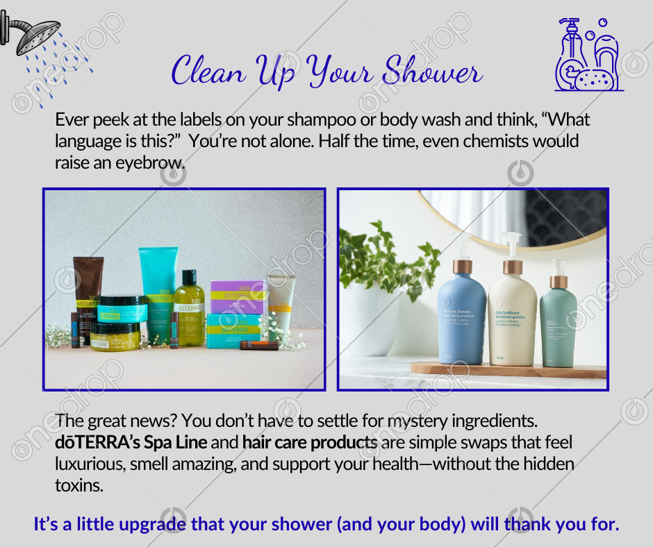 dōTERRA offers clean, effective alternatives for all your shower essentials. From everyday hair care to the indulgent Spa Line, you can swap out the toxins without sacrificing results—or that feeling of luxury.