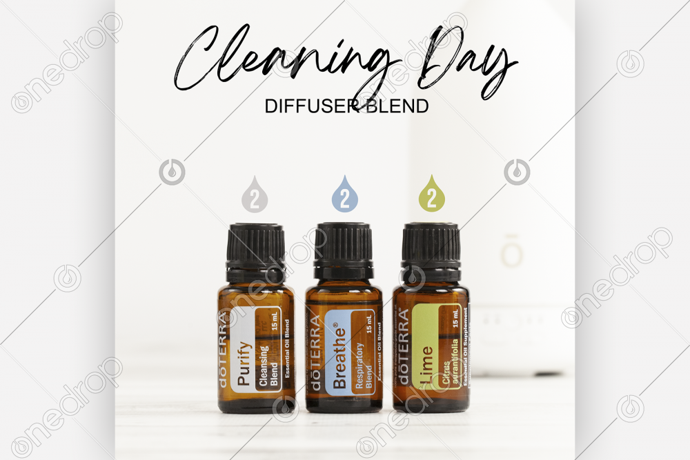 High resolution square picture of the Cleaning Day diffuser blend featuring Breathe® + Purify + Lime.