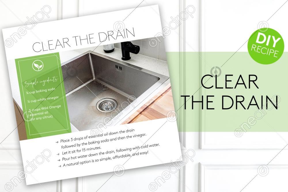1. Drip 3 drops of essential oil down the drain followed by the baking soda and then the vinegar
