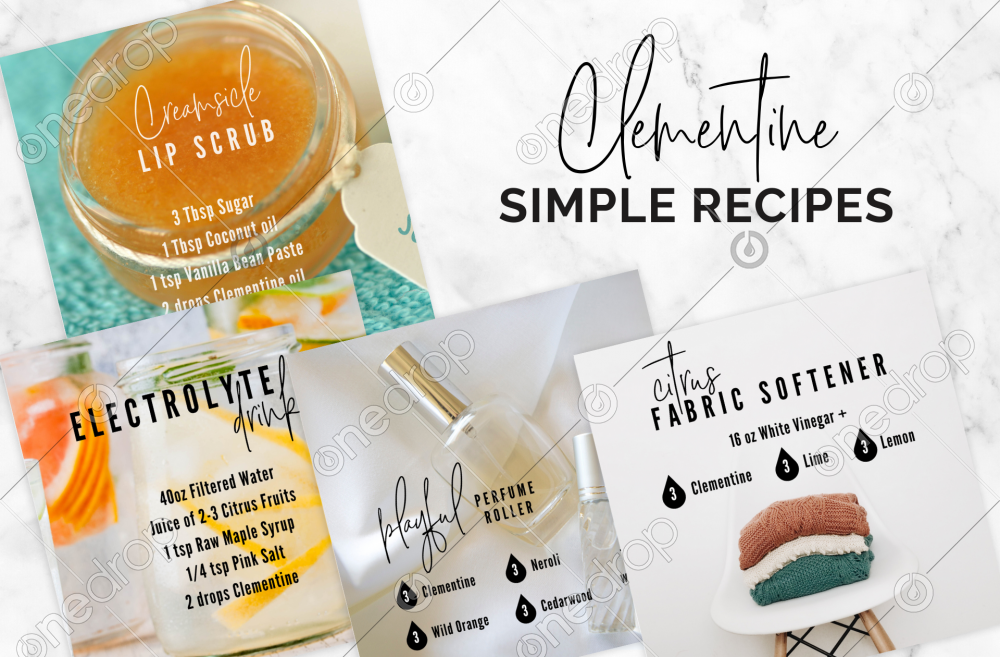 Four simple recipes using Clementine, including: Fabric Softener, Lip Scrub, Playful Perfume & Electrolyte Drink