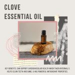 An image of Clove 15 ml bottle for you to use on your social media or groups. with two additional pre-made graphics including what clove diffuses with, and uses for clove essential oil.