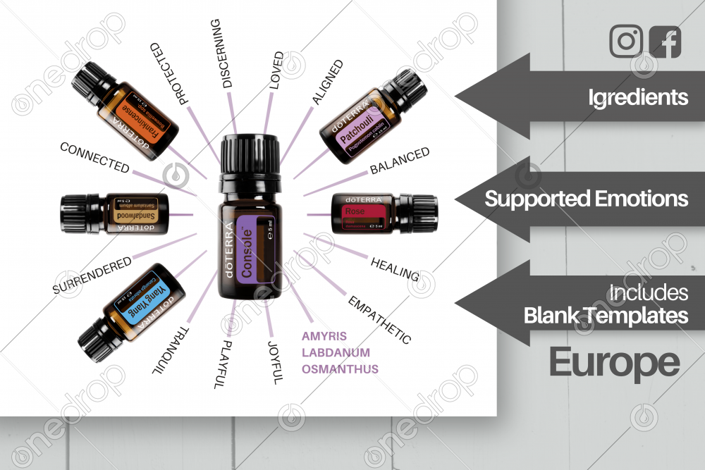 - Includes images of the following oils that are in dōTERRA Console®; Frankincense, Patchouli, Ylang Ylang, Sandalwood, and Rose + mentions Amyris, Labdanum, and Osmanthus as additional ingredients