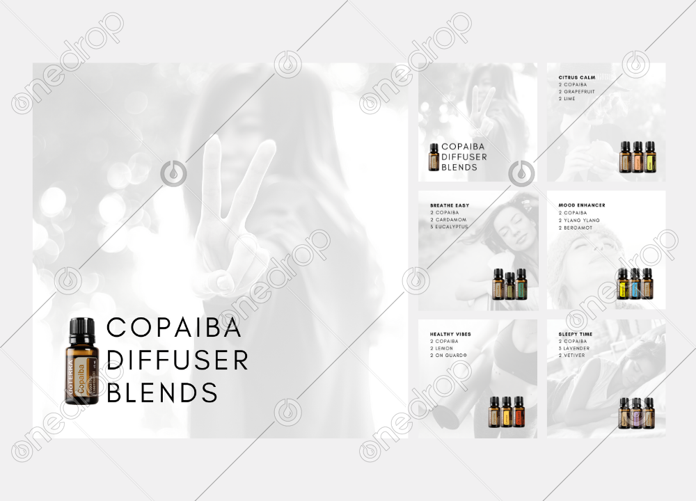 6 Square Posts + 5 Diffuser Blends with Copaiba Essential Oil.