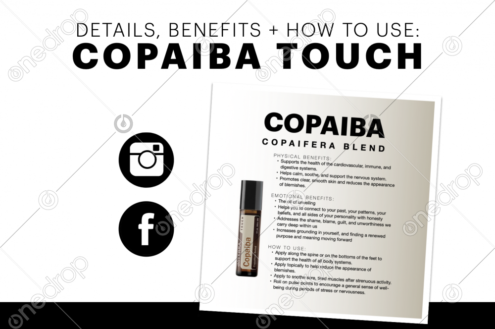 Detailed benefits and how to use Copaiba Touch (Square Social Media Image)