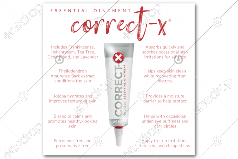 This square graphic features the reasons why we love the Correct-X essential ointment and how to use it.