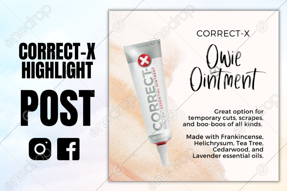 Correct-X is a natural ointment that will soothe your skin and help it return to its normal, healthy state after injury. Frankincense, Helichrysum, Tea Tree, Cedarwood, and Lavender are all the major players used to make this possible. Correct-X will provide a moisture barrier that will protect as well as hydrate the skin.