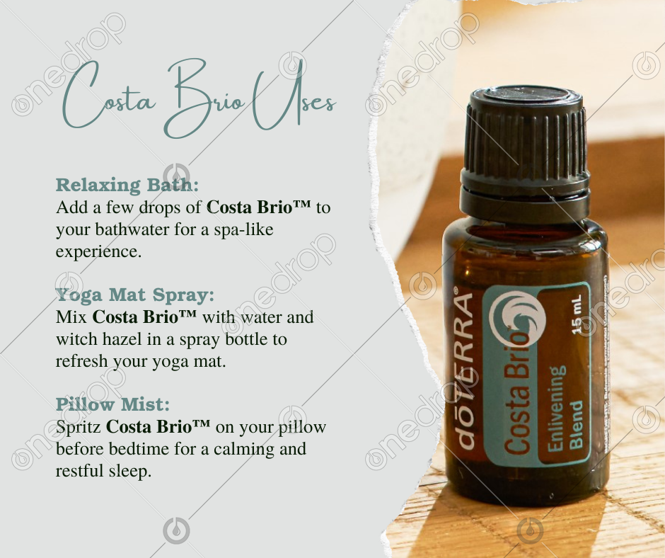 Dive into relaxation with Costa Brio™! 🌿✨ Whether it's a soothing bath, a rejuvenating yoga session, or a tranquil night's sleep, this enchanting blend does it all! 🛁💫 Simply add a few drops to your bathwater for a spa-like soak, mix with water and witch hazel for a refreshing yoga mat spray, or spritz on your pillow for sweet dreams! 🌸🌟
