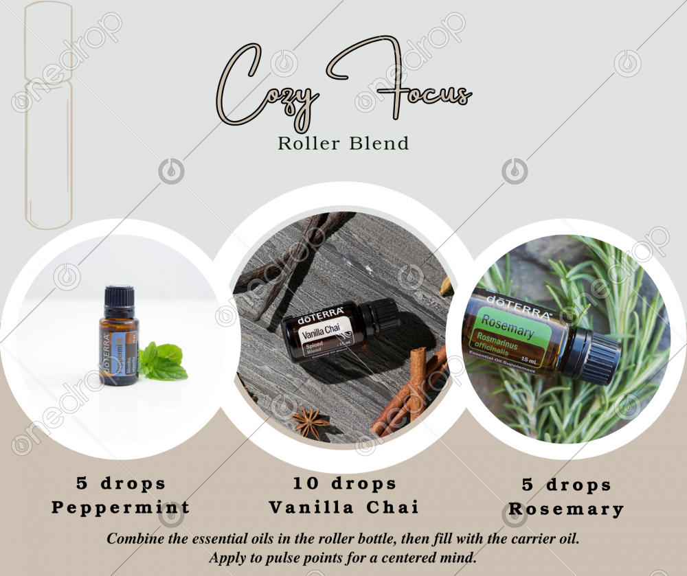 Settle into a productive and serene state with this delightful rollerbottle blend. Perfect for those moments when you need a little extra focus with a touch of cozy comfort.