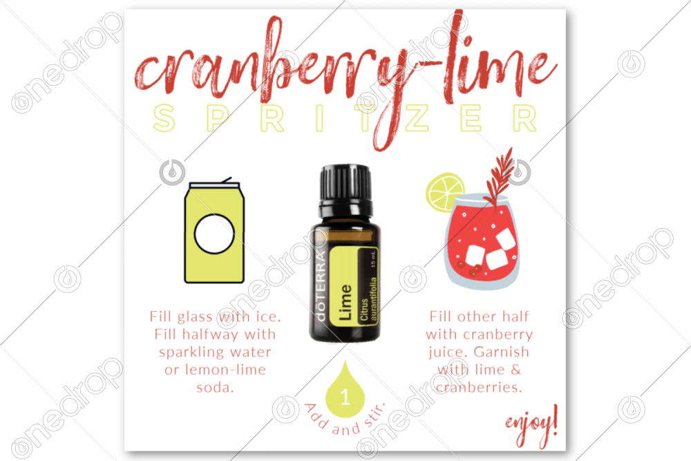 Mix up a fun drink with sparkling water or lemon-lime soda, cranberry juice, and lime oil. Perfect drink to enjoy during for Thanksgiving or Christmas holidays!