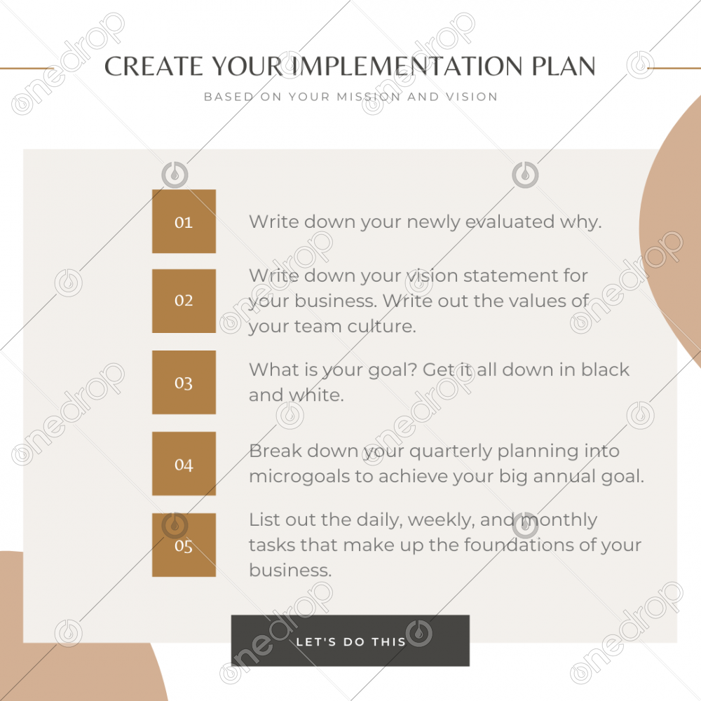 Square images for Instagram and Facebook posts with Create your Implementation Plan