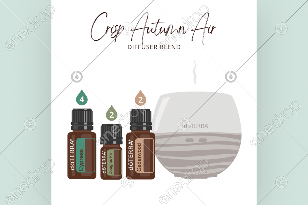 Square illustrated social media image of the Crisp Autumn Air diffuser blend.