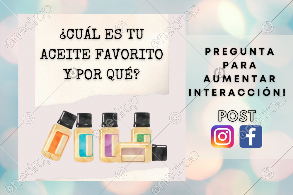 Imagen en formato cuadrado para Post de Instagram y Facebook, para interaccionar con tus seguidores, a través de la pregunta: ¿Cuál es tu Aceite Favorito y Por Qué?.