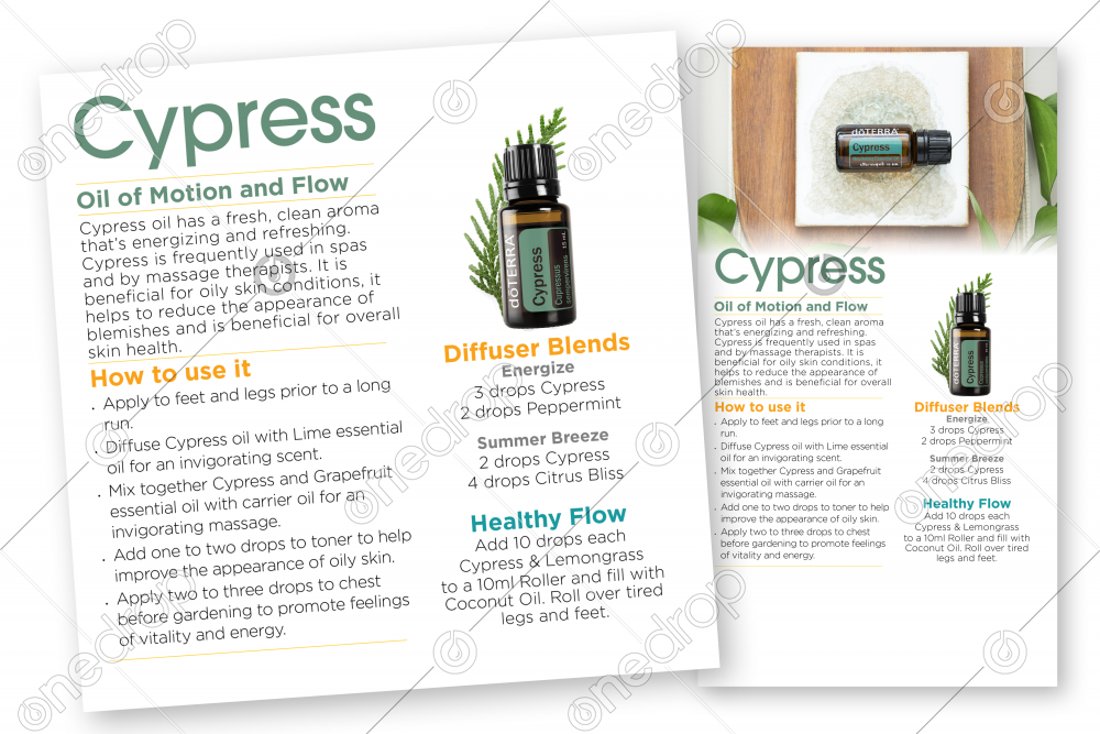 Fresh and woody, Cypress is often used in spas for its refreshing aroma and its many benefits to the skin. It reduces anxious feelings and encourages feelings of energy and vitality. Cypress is often used in massage oils, and its pleasant, woody aroma combines well with uplifting citrus oils.