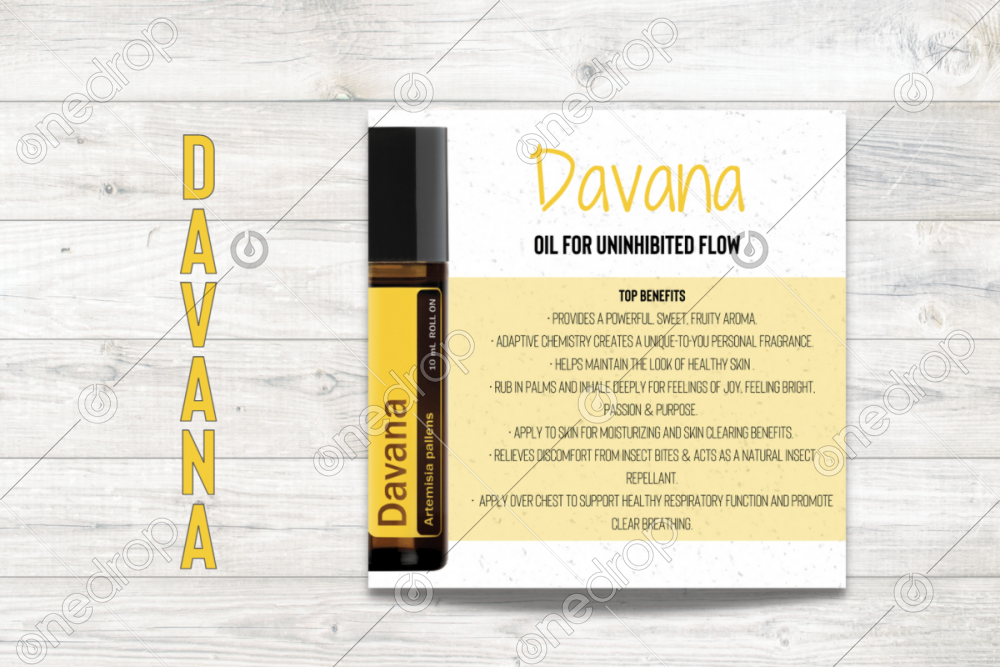 Square infographic with benefits & usage tips of Davana Essential Oil.