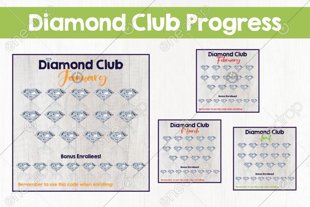 Use these graphics to post your progress in Diamond Club in your builder groups. There is a graphic for each month so ready for any diamond club months. These have 14 "enrollee" diamonds with some bonus ones. If doTERRA changes that number, I will update the graphics.