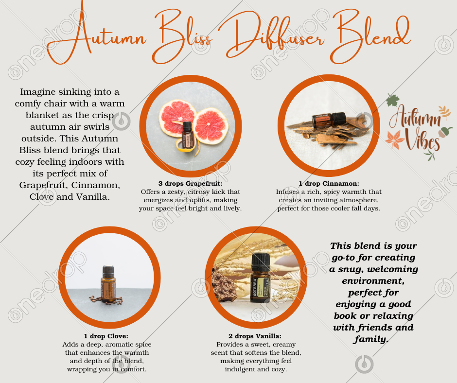 🍂 Autumn Bliss Diffuser Blend 🍂 Picture yourself sinking into a cozy chair, wrapped in a warm blanket, as the crisp autumn breeze swirls outside. This blend brings that snug, fall feeling right into your home!