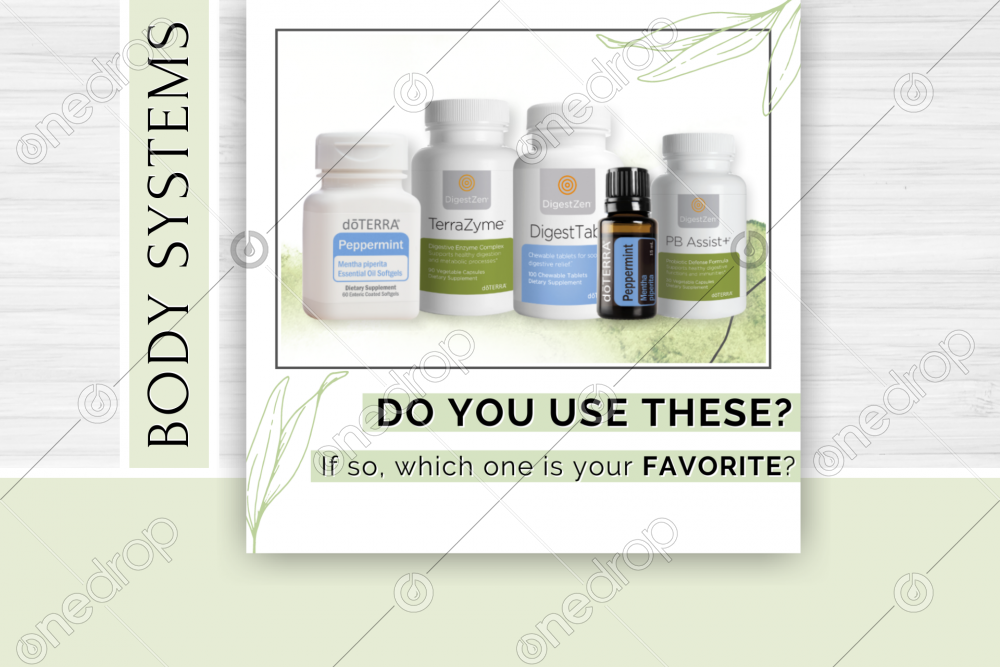 - Use to increase engagement with leaders, team members, or customers in an education group with a focus on supporting the body systems with essential oils and other dōTERRA® products (Digestive Support)