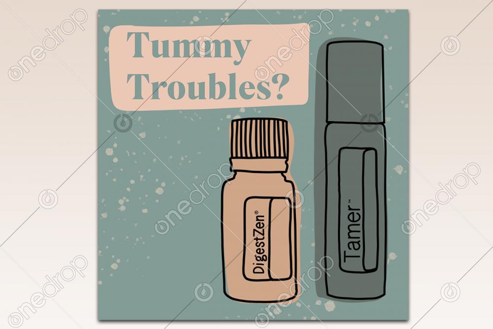 Tummy troubles graphic featuring DigestZen and Tamer.