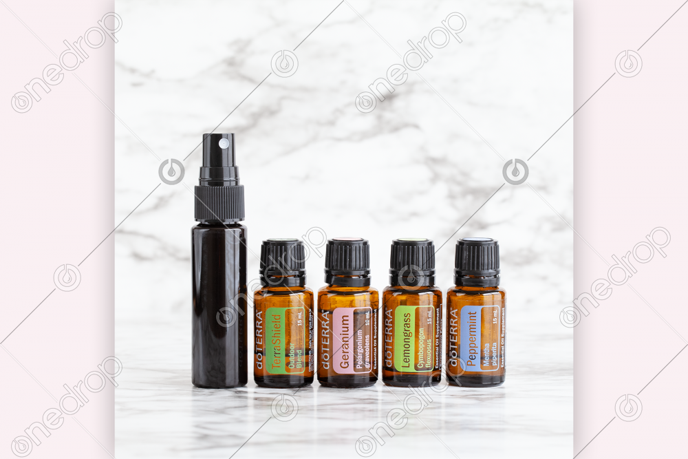 Square image featuring a DIY Bug Spray with TerraShield®, Geranium, Lemongrass and Peppermint on marble bathroom counter. Use on it’s own (with your watermark) or add in text with a font that matches your branding! Find all of the images in my Makeover Your Cabinets collection here. 📌Please make sure to watermark images with your name/logo to protect your One Drop investment and my work. Kindly direct your sharers back to One Drop to download their own 😀 If you love this image, hit the like button so I know you want more like it! Follow my contributor’s page for more of my work.