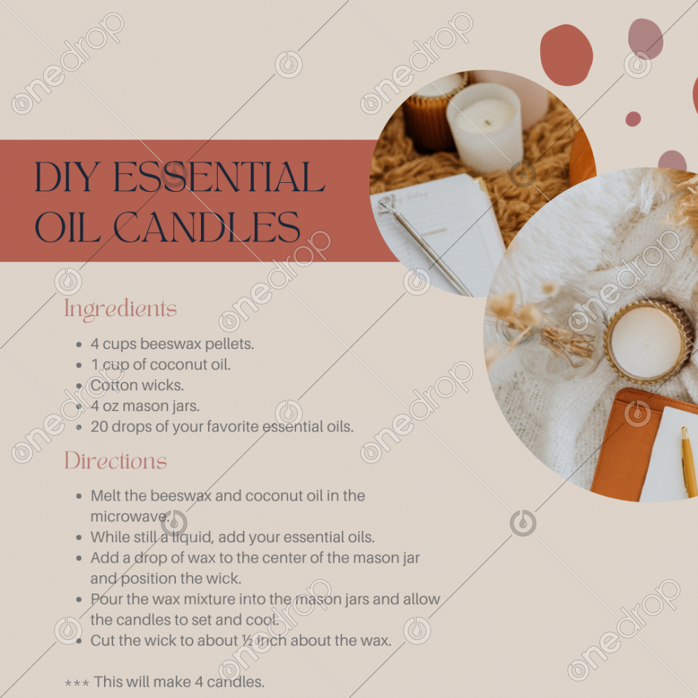 Graphic for your social media with a recipe to make your own essential oil candles.