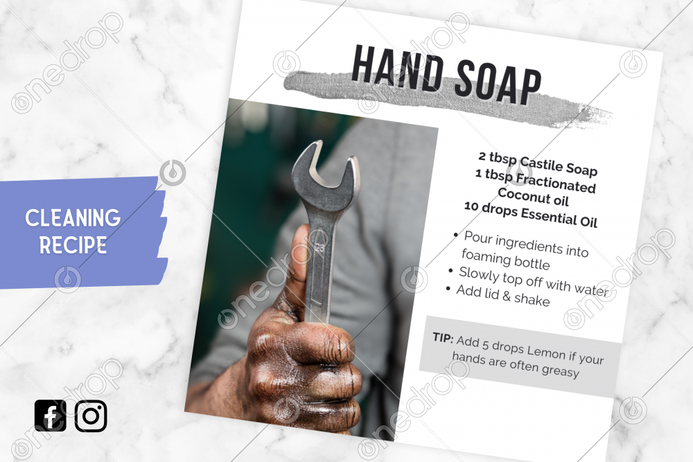 A more masculine design to introduce the easiest foaming hand soap recipe! Includes a tip for those extra greasy, sticky hands!
