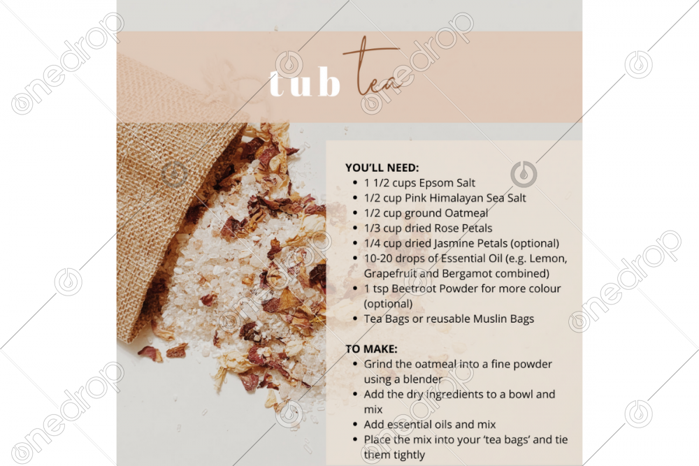 To use them, either place the tub tea bags in a hot bath and allow to steep for a few minutes, or you can place the tea bag directly under the running bathwater.