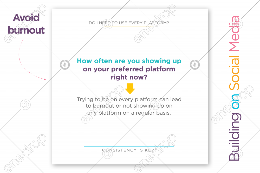 The problem with trying to be on every platform can lead to burnout or not showing up on any platform on a regular basis.