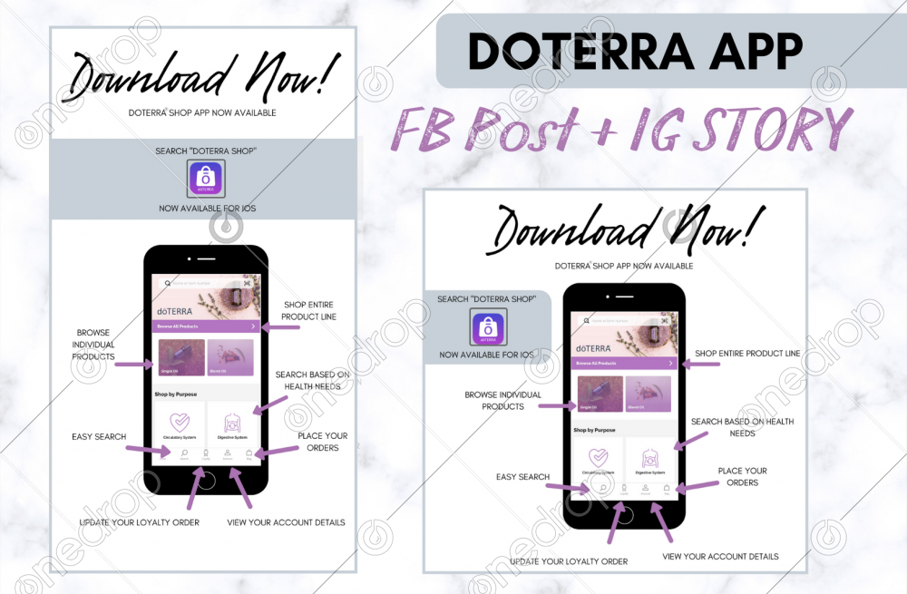 Get the word out about the new doTERRA app. Graphic lists the capabilities of the new app.