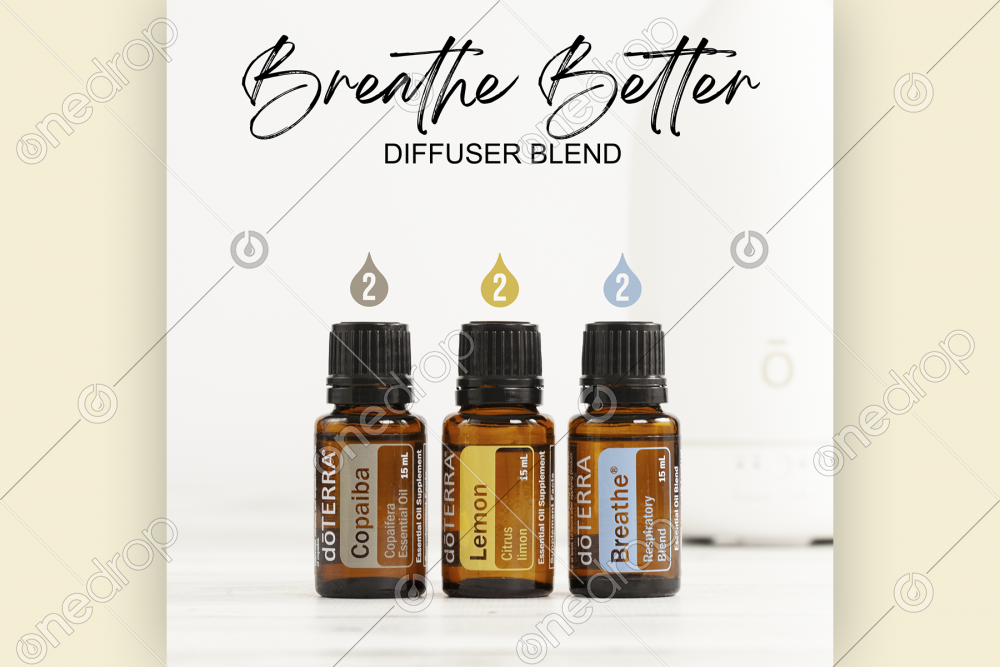 High resolution square picture of the Breathe Better diffuser blend featuring Breathe® + Lemon + Copaiba.