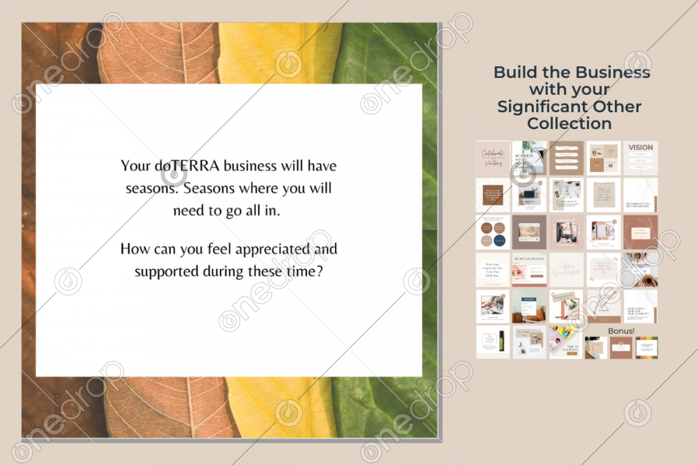 This graphic can also be used with the How to Build a doTERRA Business with your Significant Other Collection. One Drop provides the done for you copy for this collection. The content features simple ways to include your partner in your business, how to create goals together and have clear communication. (The Done-For-You-Copy is downloaded separately) All the graphics for the collection are below!