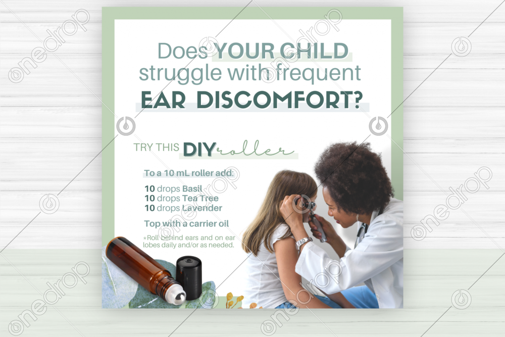 - Includes a DIY recipe for ear discomfort; 10 drops each of Basil, Tea Tree, and Lavender topped off with carrier oil in a 10mL roller