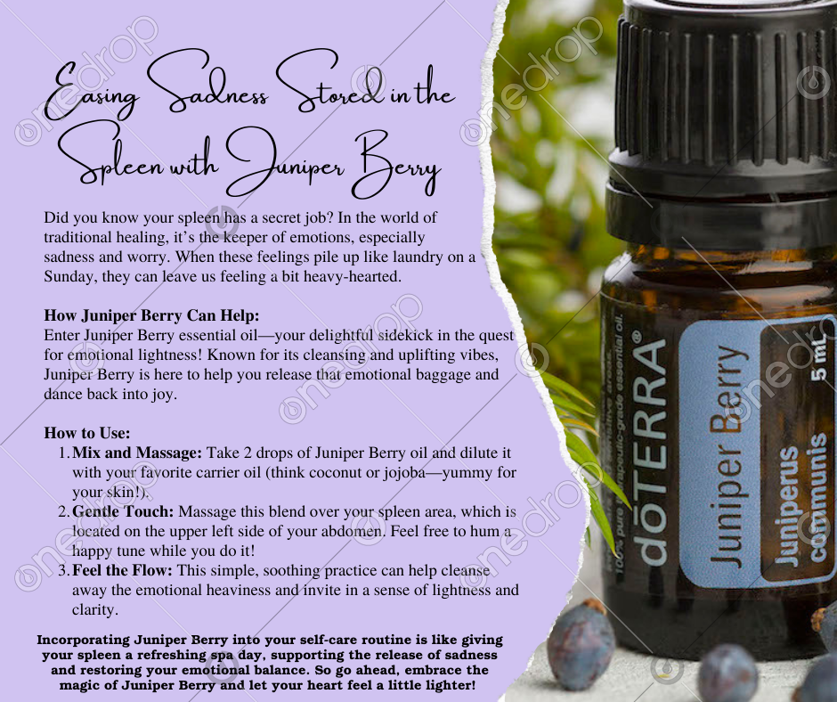 Incorporating Juniper Berry into your self-care routine is like giving your spleen a refreshing spa day, supporting the release of sadness and restoring your emotional balance. So go ahead, embrace the magic of Juniper Berry and let your heart feel a little lighter! 🌈✨