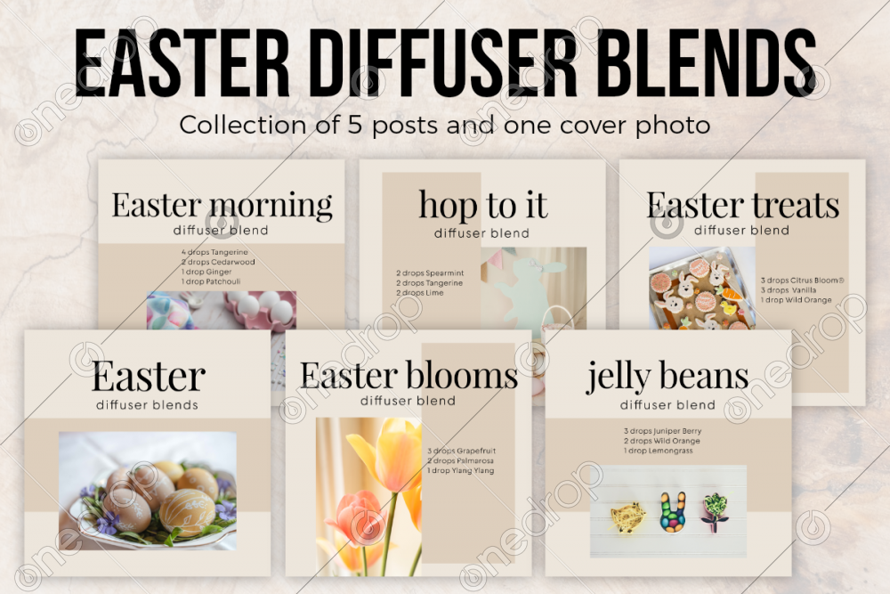 Five Easter diffuser blends with one cover photo perfect for Easter weekend.