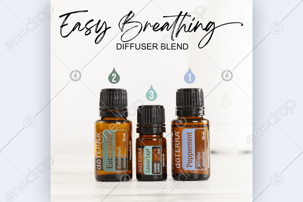 High resolution square picture of the Easy Breathing diffuser blend featuring Laurel Leaf + Eucalyptus + Peppermint.