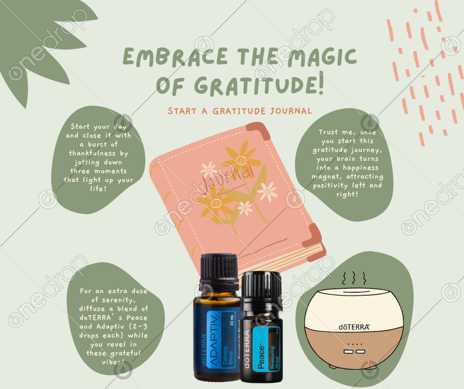 For an extra dose of serenity, diffuse a blend of doTERRA’s Peace and Adaptiv (2-3 drops each) while you revel in these grateful vibes! 🌿💫