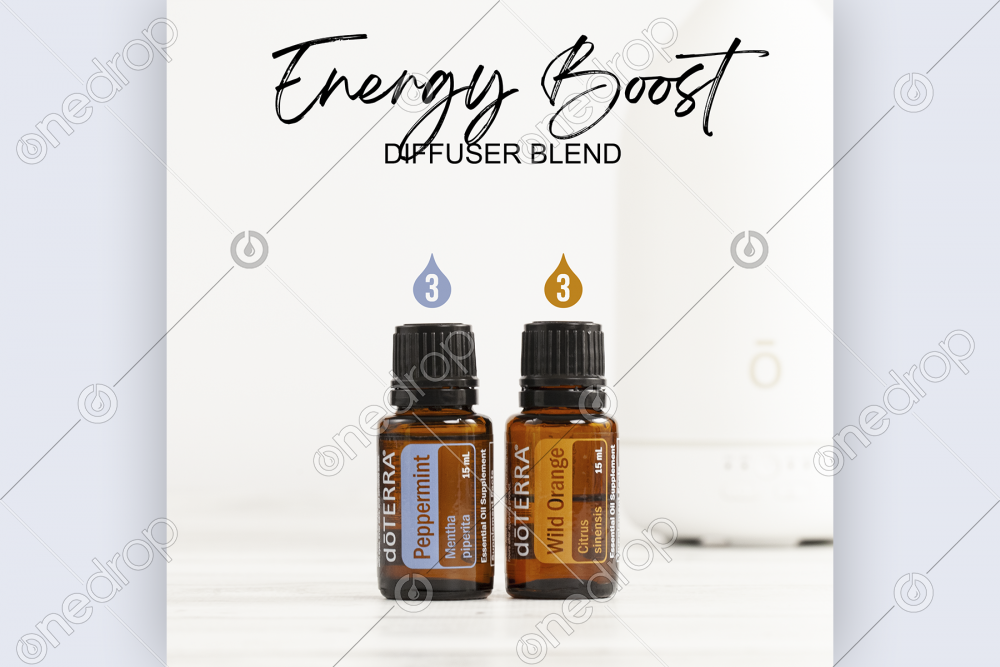 High resolution square picture of the Energy Boost diffuser blend featuring Peppermint + Wild Orange.