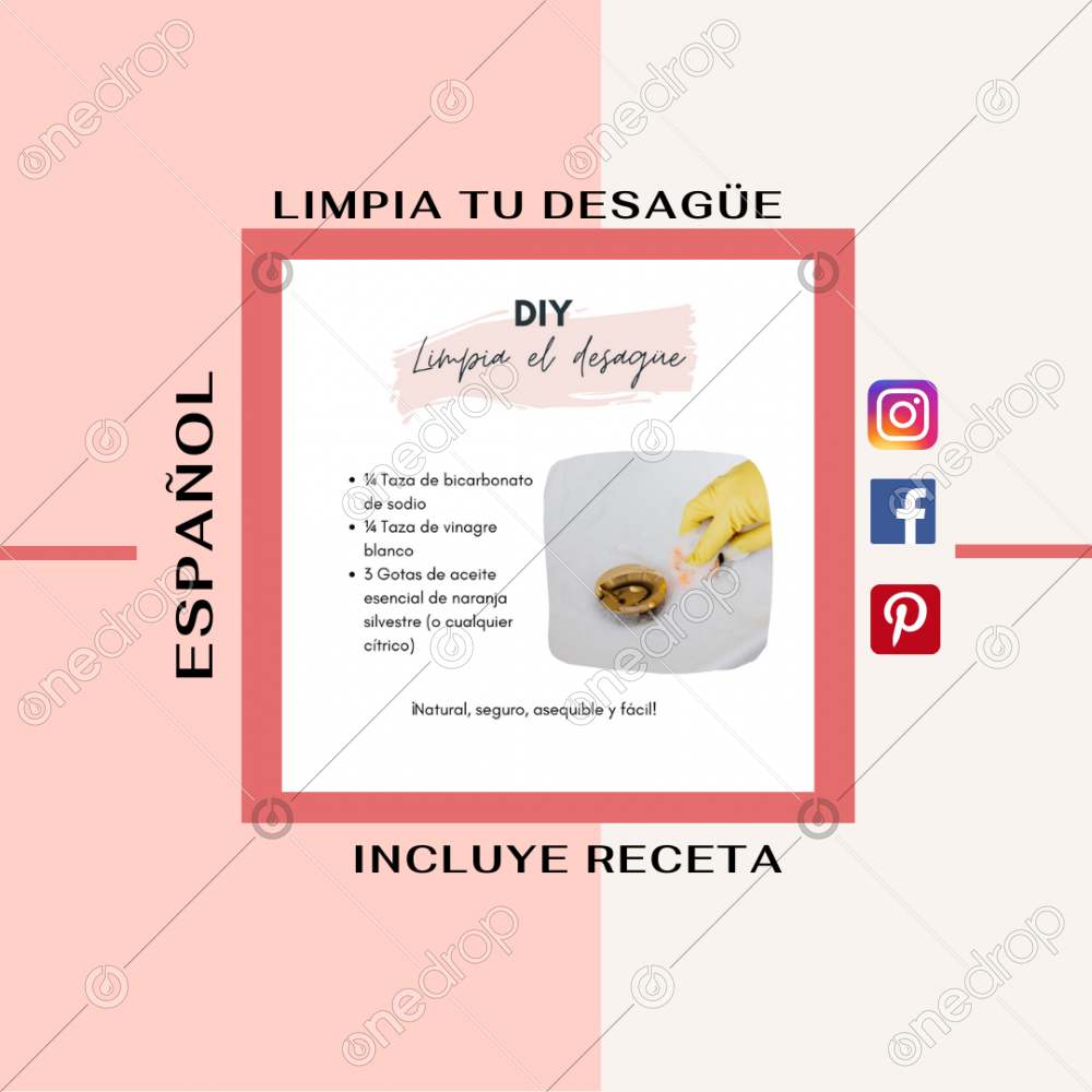 1. Gotee 3 gotas de aceite esencial por el desagüe seguido por el bicarbonato de sodio y luego el vinagre