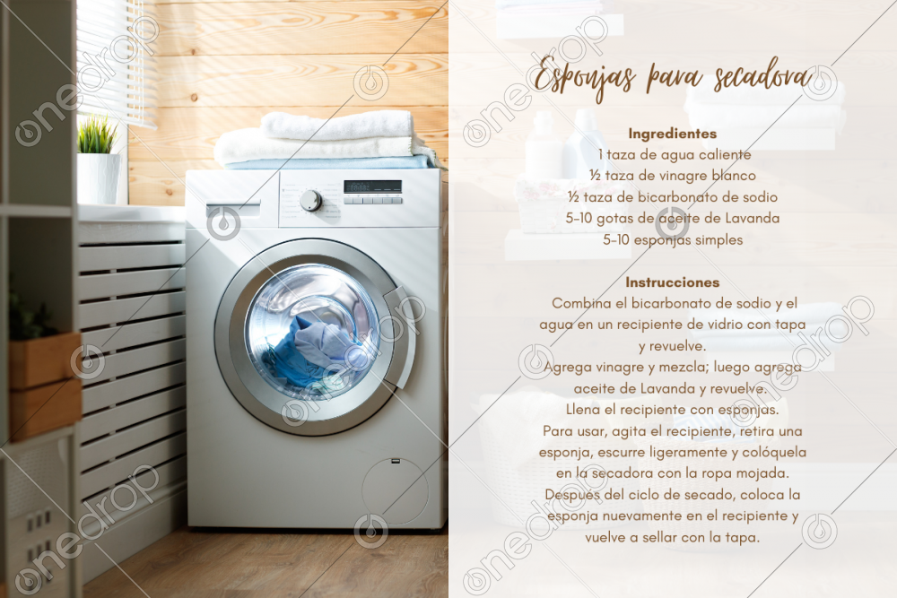 Imagen para redes sociales con receta para realizar esponjas para secadora
