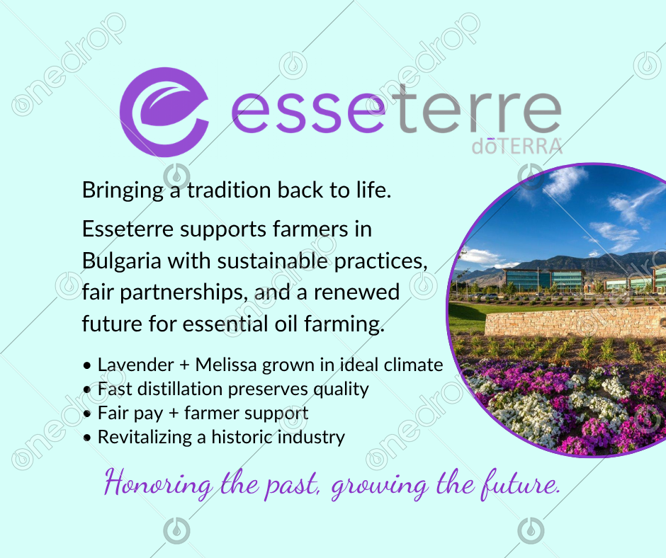 To help bring that tradition back to life, dōTERRA established Esseterre Bulgaria in 2015—an advanced farming and distillation operation located in Dobrich, eastern Bulgaria. Today, Esseterre is one of the largest distilleries in the country and plays a key role in producing oils like Lavender and Melissa, which thrive in the region’s sunny climate and rich, well-drained soil.