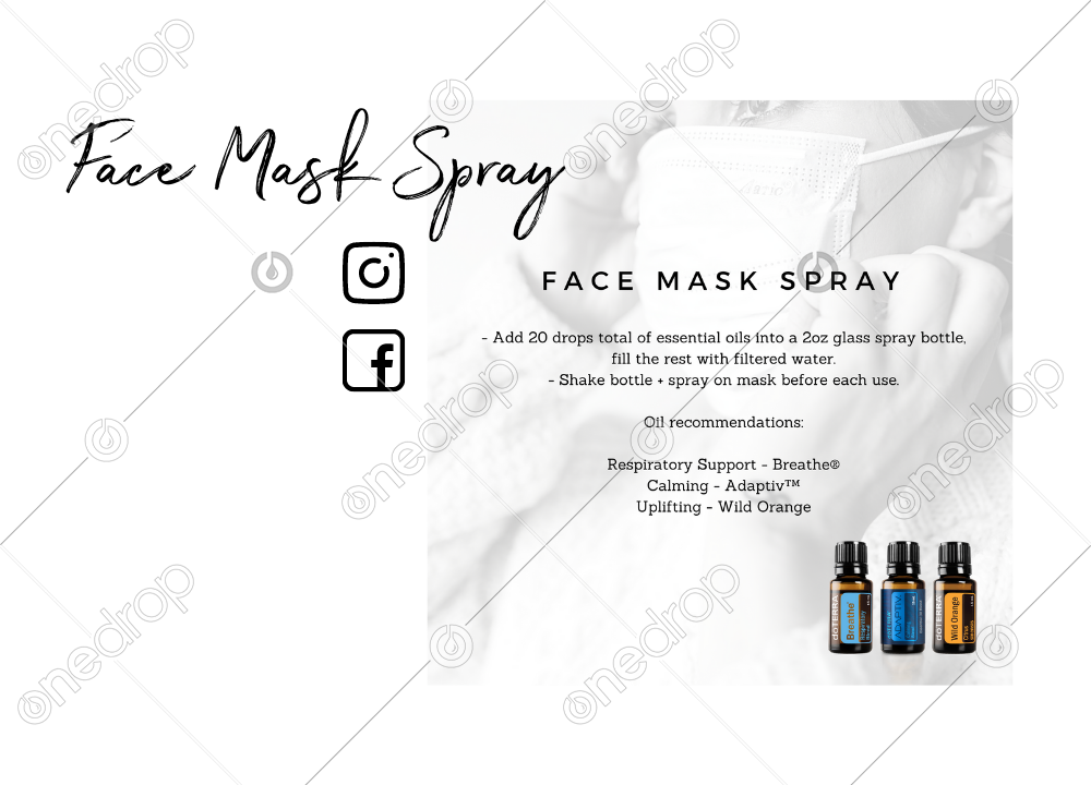 Graphic with DIY Face Mask Spray recipe + 3 Oil suggestions.
