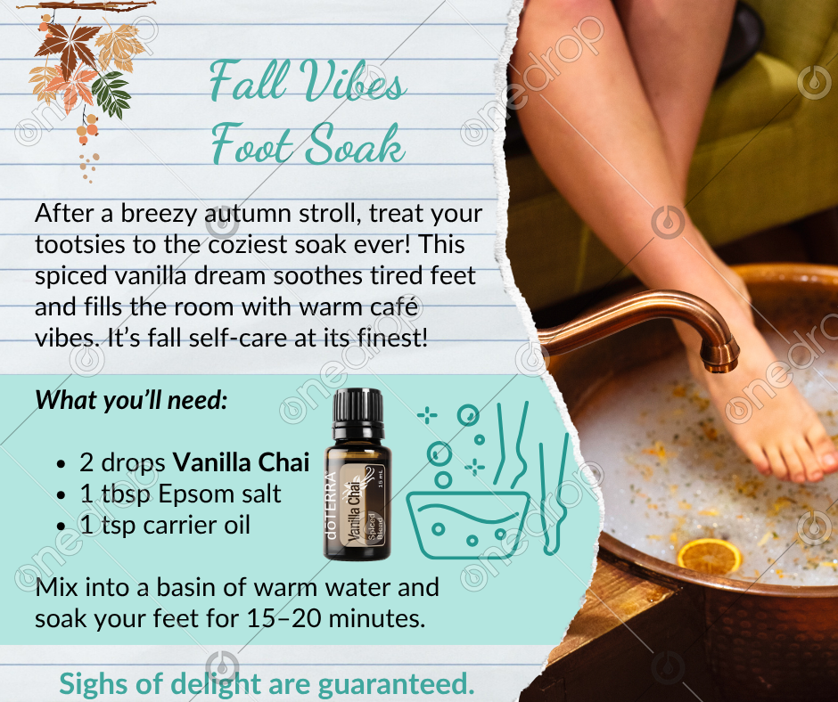 After a breezy autumn stroll, treat your tootsies to the coziest soak ever! This spiced vanilla dream soothes tired feet and fills the room with warm café vibes. It’s fall self-care at its finest!