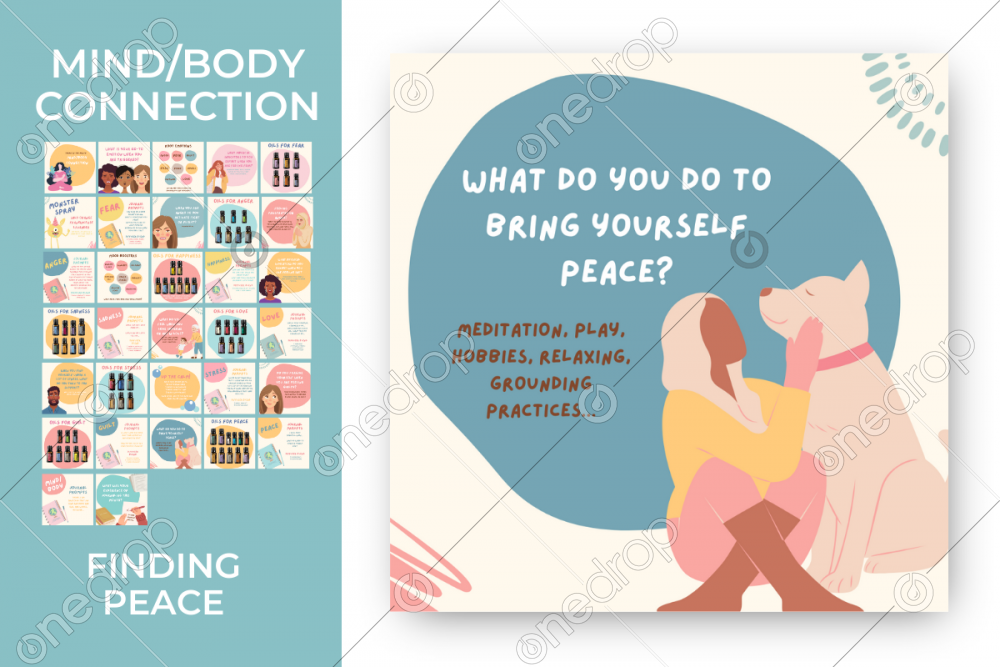 This graphic is part of the Mind/Body Connection Collection. The Collection highlights 8 emotions with journal prompts, suggested essential oils for support, and a understanding of each emotion. (The Done-For-You-Copy is downloaded separately). All the graphics for the collection are below!