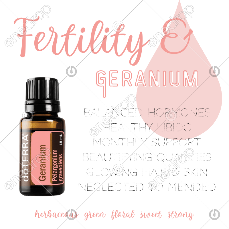 - Graphics spotlighting the fertility benefits of Geranium Essential Oil.