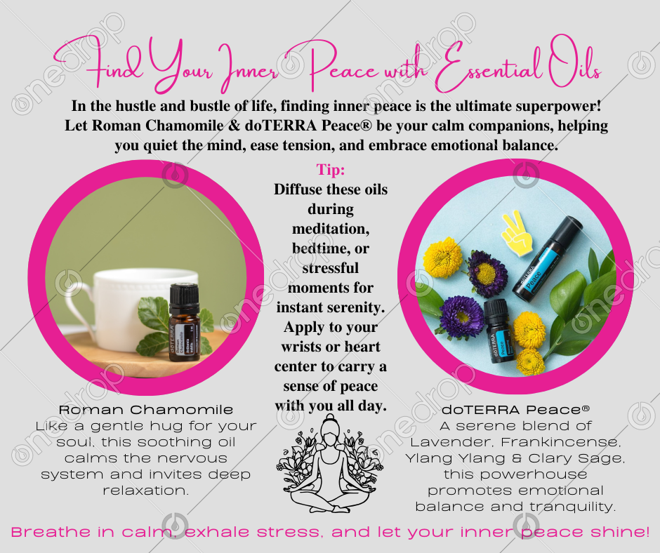 In the hustle and bustle of life, finding inner peace is the ultimate superpower! 🕊️💙 Let Roman Chamomile & doTERRA Peace be your calm companions, helping you quiet the mind, ease tension, and embrace emotional balance.