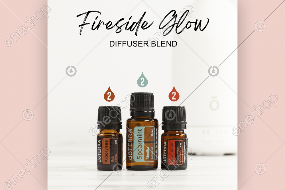 High resolution square picture of the Fireside Glow diffuser blend featuring Arborvitae + Spearmint + Cinnamon.