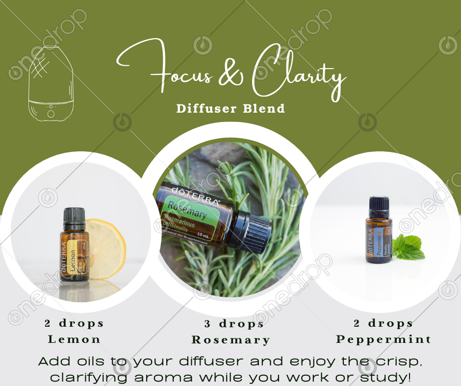 📝 Directions: Add oils to your diffuser and enjoy the crisp, clarifying aroma while you work or study!