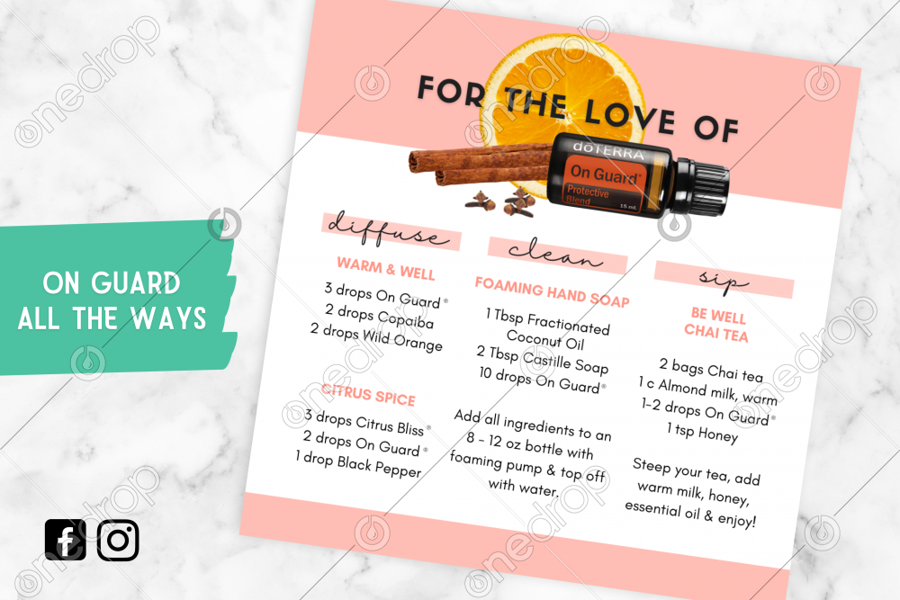 Diffuser blends, cleaner and tea recipe using On Guard. See the growing collection of "For the Love of..." here.